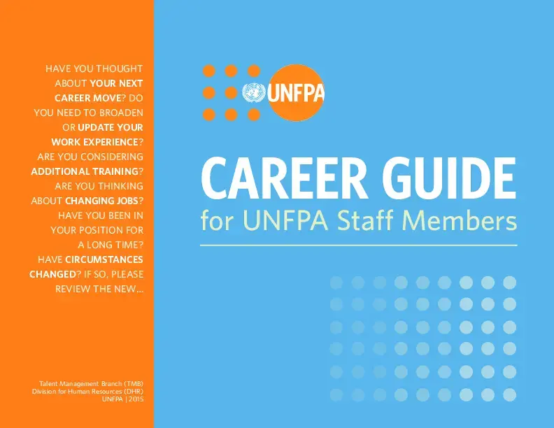 UNFPA created the Career Guide for UNFPA Staff Members to provide career guidance and advice for staff and managers at UNFPA—and beyond. The Guide provides information, tips, and resources to help you think about a wide range of career management and career development topics. The authors also incorporated the insights of a number of UNFPA colleagues, who were asked to share their career wisdom and best practice.