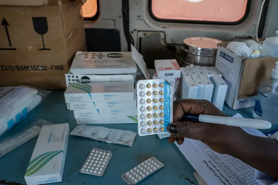 UNFPA supports the mobile health team in the Abu Al Naja camp by providing physical and mental healthcare, essential medicines, including for the clinical management of rape, and referral services. Midwives are on hand to ensure safe deliveries and antenatal and postnatal care.