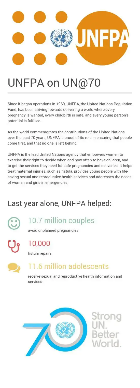 This year marks the 70th anniversary of the United Nations. UNFPA, the United Nations Population Fund, began operations 24 years later.